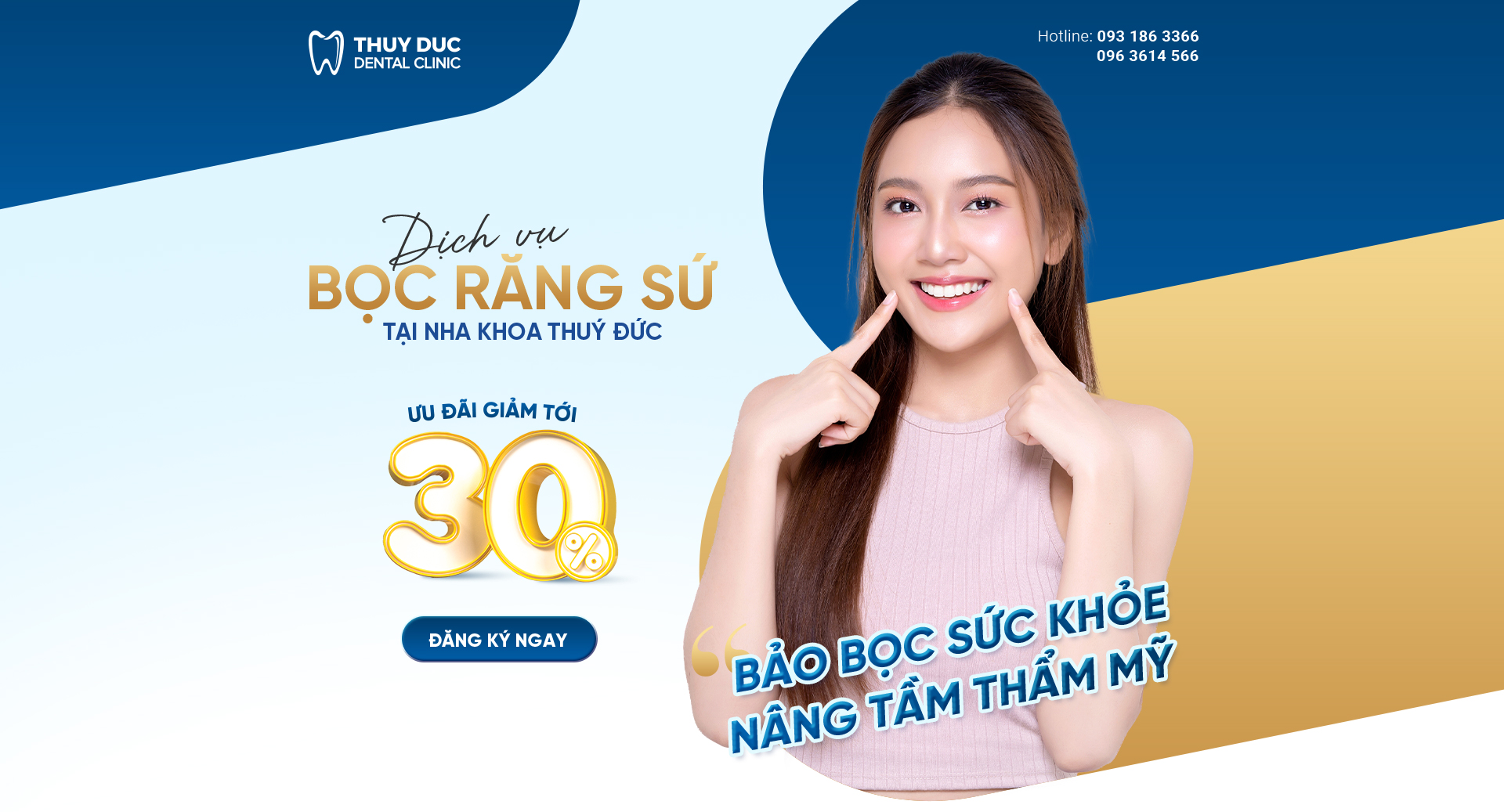 Dịch vụ bọc răng sứ thẩm mỹ tại Nha khoa Thuý Đức chính là điều bạn đang tìm kiếm. Lấy sức khoẻ làm nòng cốt, lấy thẩm mỹ làm trọng tâm, Nha khoa Thuý Đức là người bạn đồng hành đáng tin cậy cùng bạn tìm kiếm nụ cười tự tin, toả sáng.